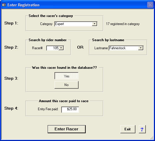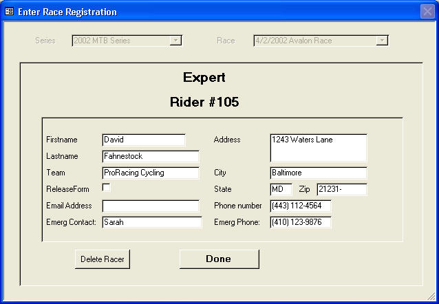 numbers to the same racer, so a duplicate record for this racer will NOT be